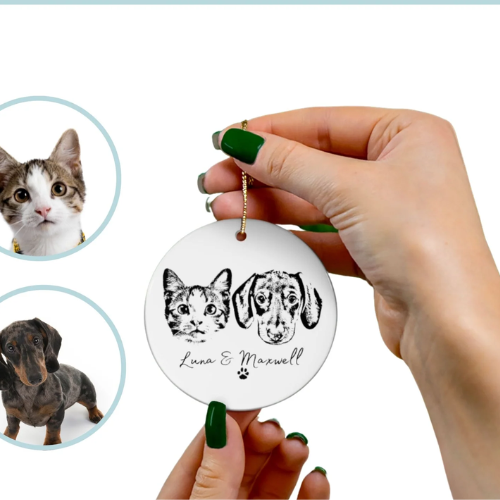 They print a picture along with your pet’s name right onto a high‑quality porcelain ornament. It’s made to last and comes with a string so you can hang it easily. It’s perfect as a sweet gift for pet lovers or a meaningful way to remember your furry friend, especially during the holidays or special occasions.